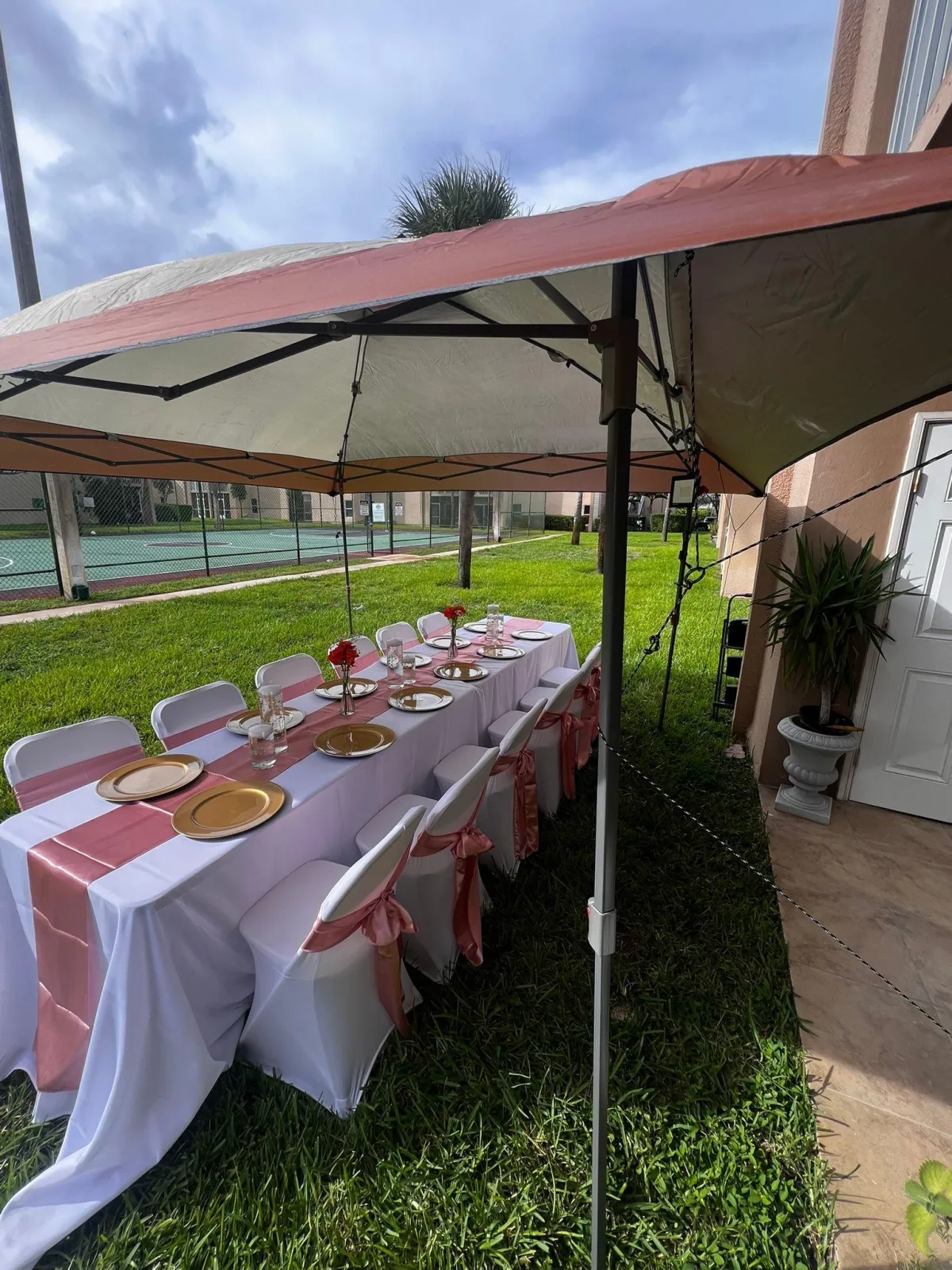 Alquiler de Carpa Estándar $160. Una carpa espaciosa y de alta calidad, ideal para proteger a tus invitados y mesas de los elementos.