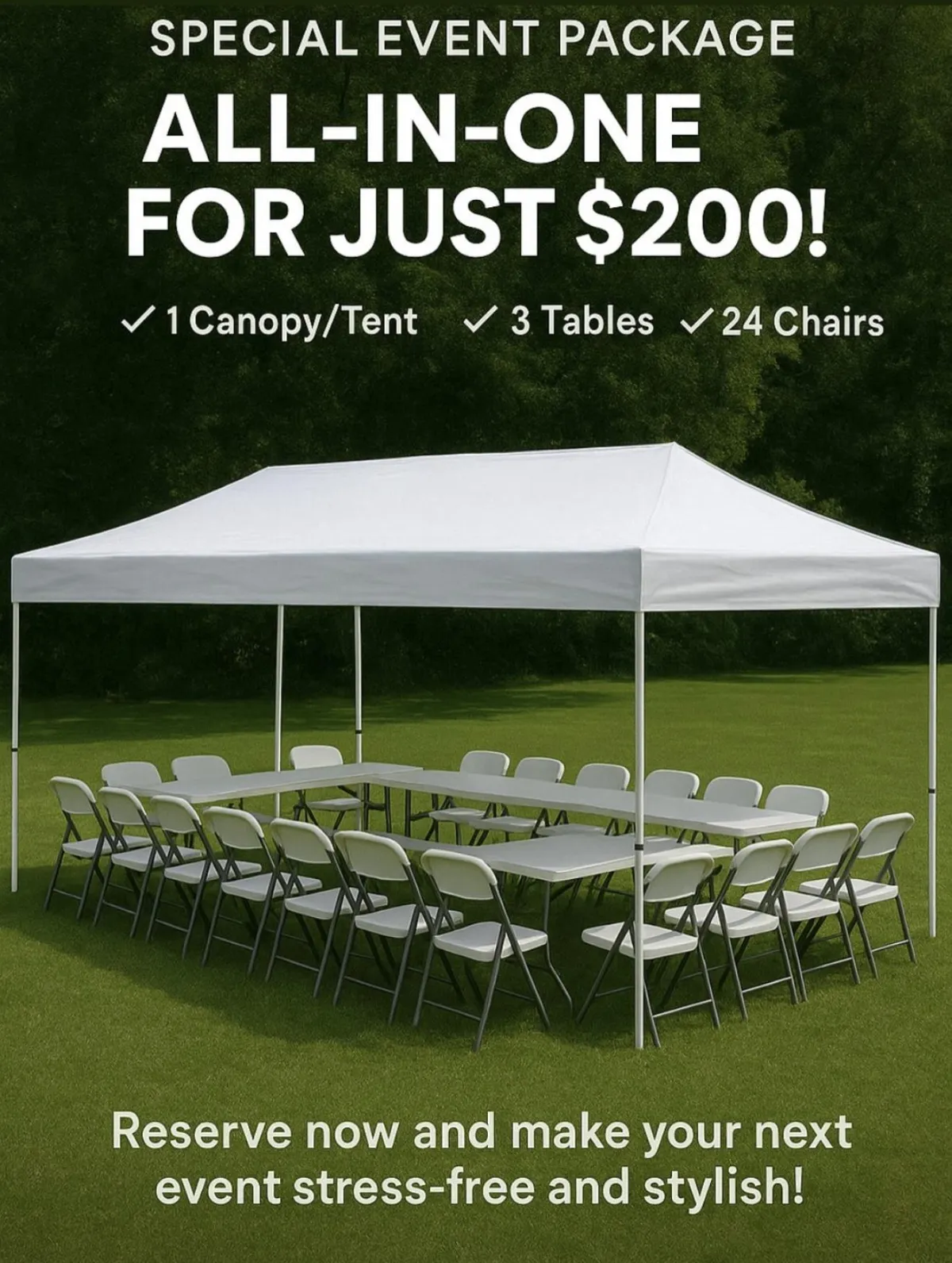 Por solo $200—es la solución simple y económica para tu próxima fiesta en el patio, graduación o evento pequeño.