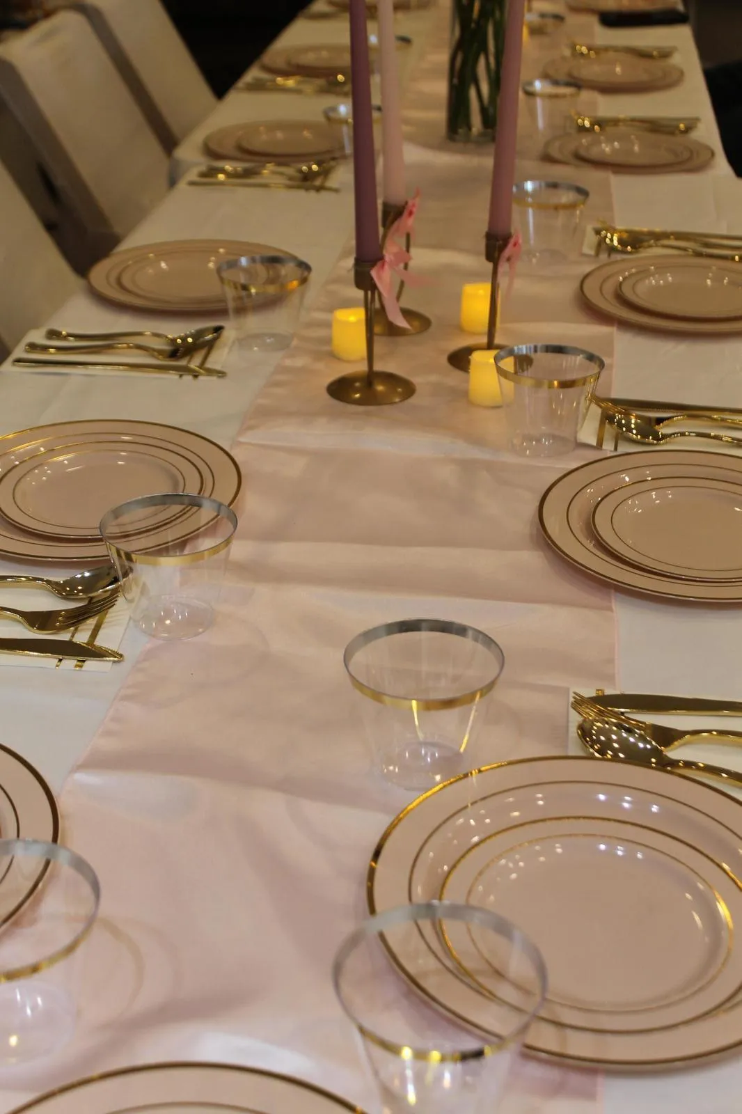 Tablecloths $12 each. Available in various colors and sizes to instantly elevate your look.